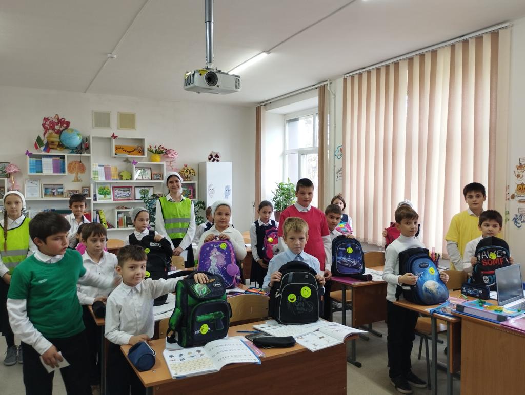 Были поставлены следующие цели: - применить знания безопасного поведения при передвижении в темное время суток; познакомить с предназначением световозвращающих элементов; закрепить навык ношения светоотражающих элементов, правила расположения их на одежде, школьных рюкзаках и т.д. В ходе данного мероприятия учащиеся были ознакомлены с принципом действия световозвращающих элементов и на на сумки учащихся были наклеены светоотражающие наклейки.