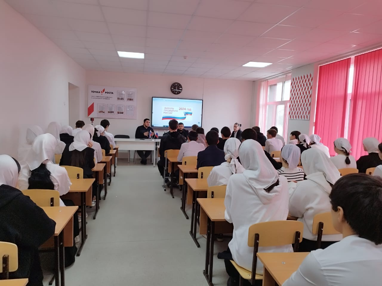 21.02.2024В МБОУ «Наурская СОШ №1 » прошло мероприятие в связи с выборами Президента РФ, на котором присутствовал сотрудник ФСБ. Факультативный час в школе по выборам президента РФ может быть очень полезным для обучения обучающихся основам демократии, избирательного процесса и политической системы России. В рамках такого урока можно провести обсуждение основных кандидатов на пост президента, их предвыборные программы, роль СМИ в избирательном процессе, а также значимость участия граждан в выборах.